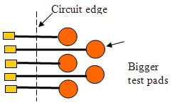 目前,飛行探針或什至是剛性探針(釘床)技術(shù)的下限為2-3mils。我們預計隨著時間的推移,它會降低,因為必要時需要更小的平臺。如果您的微電路具有較小的點(例如邊緣條連接器),則將電路以外的線路延伸到3-4 mil焊盤是明智的。