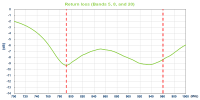 5820天線跨越3個NB-IoT頻帶的示例回波損耗頻譜