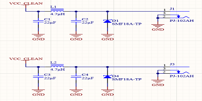 VCC_CLEAN網絡只是在穩(wěn)壓板上過濾的電池電壓。由于只有監(jiān)視器依靠電池電壓運行,而電池電壓具有自己的內部穩(wěn)壓器,因此對大容量電容的需求很小。電池電源的預期負載非常穩(wěn)定,幾乎沒有瞬變現(xiàn)象。