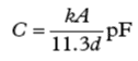 C為電容,A為板面積,單位為平方厘米,k為板材料的相對(duì)介電常數(shù),d為板間距離,單位為厘米。