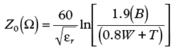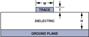 H是從地平面到信號(hào)線的距離,W是線寬度,T是線厚度;所有尺寸單位為milsεrPCB材料的介電常數(shù)。