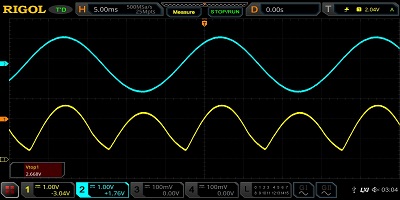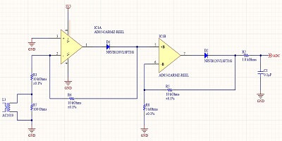 運(yùn)放能夠輸出的最大電壓為V +減去二極管正向電壓。在精密整流器設(shè)計(jì)期間應(yīng)牢記這一點(diǎn)。如果增益太高而無法使用ADC可以讀取的整個(gè)電壓范圍,則將削波波形的頂部。